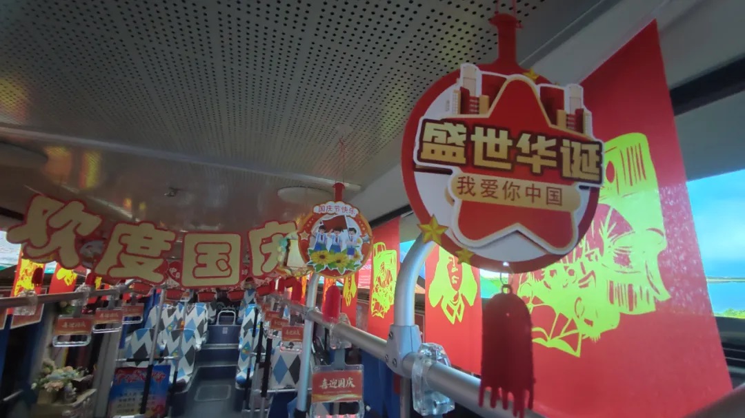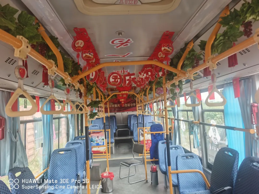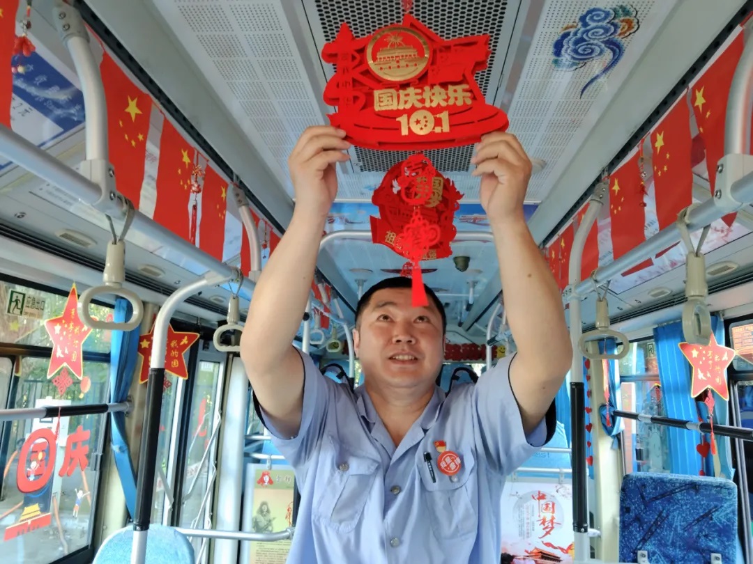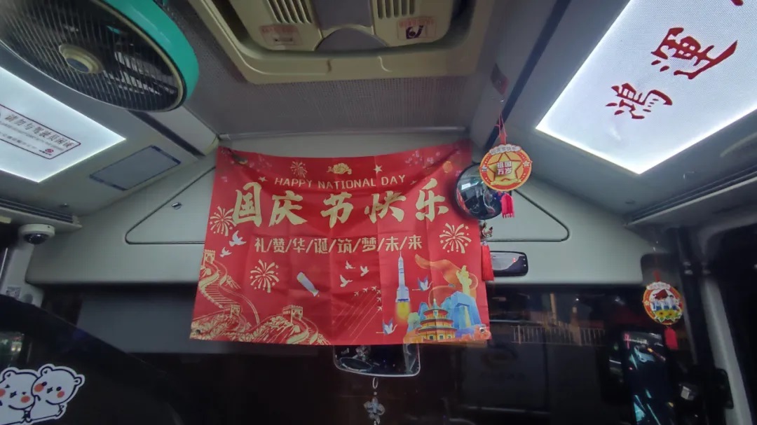 國慶前夕,駕駛員精心清潔車輛、裝扮車廂,處處洋溢著節(jié)日氣氛。