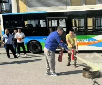 培訓(xùn)之后,在場人員來到公司院內(nèi)進(jìn)行實地綜合演練。針對公交車輛突發(fā)火災(zāi)、乘客攜帶易燃易爆物品乘車等情況,駕駛員如何緊急停車、疏散乘客、使用滅火器進(jìn)行撲救、處置危險品等方面進(jìn)行了演練。