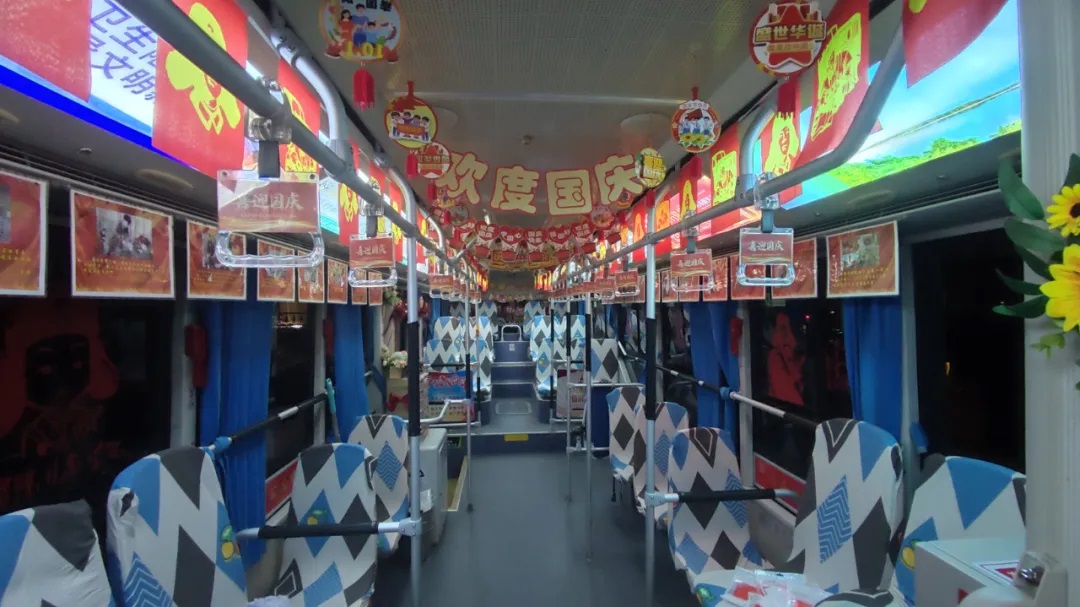 各車隊準(zhǔn)備了各式各樣的裝飾品精心裝扮自己的車廂。駕駛員們將自己對祖國的美好祝愿注入在這十米車廂之中,希望能把這份心意傳遞給每一個人。市民們在乘車時被這份情感所感染,也紛紛留下了自己的心愿和祝福。