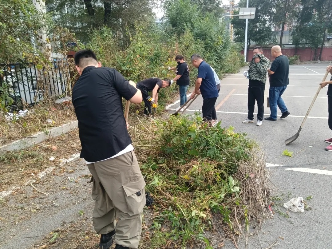場面一:9月29日,黃河公司40余名機(jī)關(guān)干部手持鐮刀、鐵鍬、掃把等工具,對公司場院周邊雜草進(jìn)行了大清理,對院內(nèi)衛(wèi)生進(jìn)行了清掃,以嶄新形象迎接國慶節(jié)的到來。