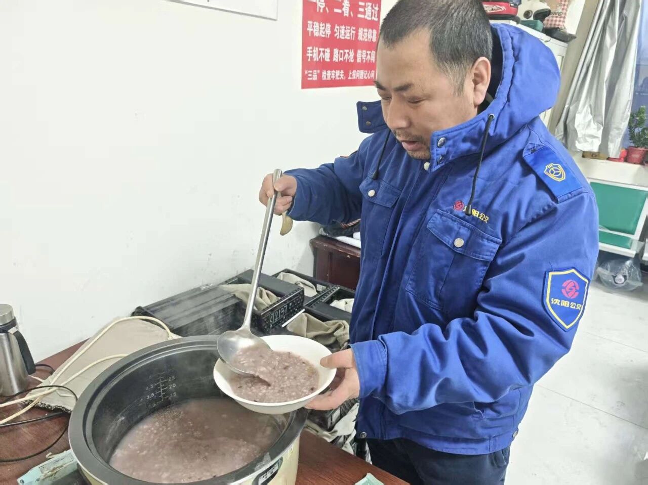 接過粥碗,熱氣順著手心蔓延,駕駛員們笑意融融。一碗粥下肚,不僅驅(qū)散了凌晨的冷意,更熨帖了身心。車隊管理人員也借此機(jī)會,細(xì)細(xì)叮囑:冬日行車,注意保暖,穩(wěn)駕慢行,務(wù)必把安全放在首位,以飽滿的精神迎接每一位乘客。